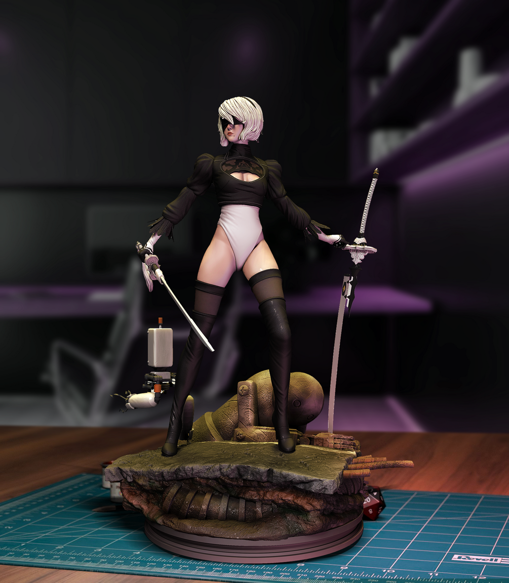 Hello everyone! This is my last project sculpted with the focus on collectibles. 2B principal character in Nier Automata. The project was made 100% by ZBrush and Photoshop for Rendering. Hope you like it (: You can follow me on instagram for more updates. @nandosonny